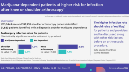 Patients who are dependent on marijuana may face higher infection rates following knee and shoulder arthroscopy, according to a study presented at the Scientific Forum of the American College of…