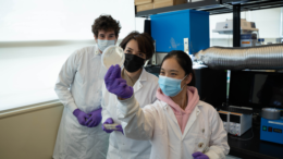 UBC Okanagan assistant professor Dr. Sepideh Pakpour, along with student researchers Enrique Calderon and Rita Lam, examine a sample beside the natural light experimentation chamber. Their research suggests light through…